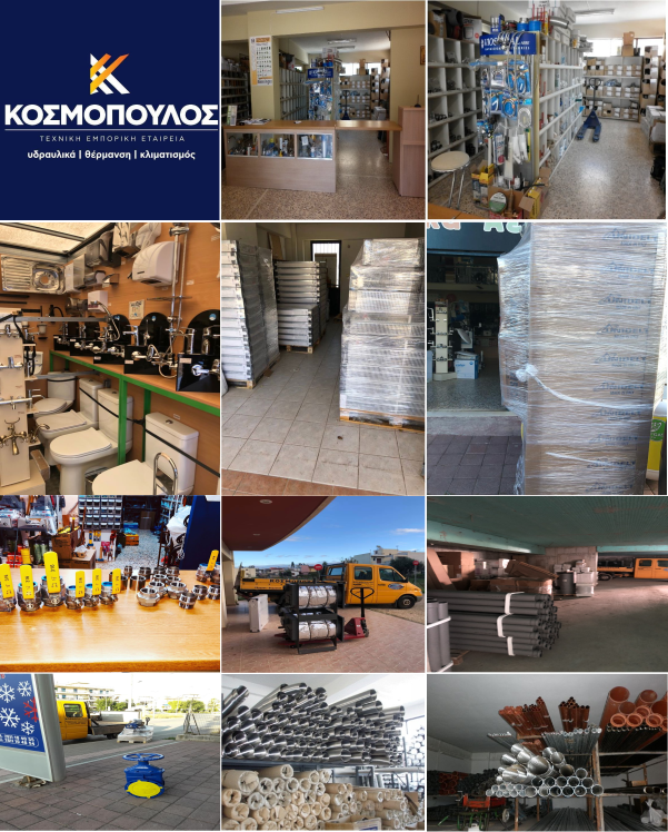 Η Κ.ΚΟΣΜΟΠΟΥΛΟΣ & ΣΙΑ Ο.Ε. δραστηριοποιείται με αντικείμενο εργασιών το εμπόριο υδραυλικών υλικών και ειδών θέρμανσης και κλιματισμού από το 1978 στην Πάτρα και την ευρύτερη περιοχή της Δυτικής Ελλάδας. Η εταιρία προσφέρει ολοκληρωμένες λύσεις για την μελέτη την εγκατάσταση και την τεχνική υποστήριξη στους τομέις των υδραυλικών, πυρόσβεσης, ηλιακών συστημάτων, συγκροτημάτων άντλησης, εφαρμογών υγραερίου, θέρμανσης δαπέδου,...... γεωθερμίας, ηλιοθερμίας, κλιματισμού-ψύξης, δροσισμού αλλά και εναλλακτικών πηγών θέρμανσης. Η εταιρία συνεργάζεται με μεγάλους οίκους παραγωγής εξωτερικού (Wilo, Banninger, Connex, Saint Roch Couvin, Cordivari,Veha Quin, Buderus, Cimberio) καθώς και με ελληνικές βιομηχανίες (Χαλκόρ, Brass Form, Σιδενόρ. Μελέτες/Τεχνική Υποστήριξη - Προτεραιότητα της εταιρείας μας είναι η ποιότητα, η υψηλή απόδοση, η οικονομική λειτουργία, και η αισθητική αναβάθμιση του χώρου σας με γνώμονα όλα αυτά τα κριτήρια η εταιρία έχει συνάψει και στο χώρο της ύδρευσης, θέρμανσης, ψύξης, πυρόσβεσης, υγραερίου, συνεργασίες με μεγάλες επωνυμίες που παρέχουν υψηλή τελική αξία. Η εταιρία διαθέτει έμπειρους και εξειδικευμένους τεχνικούς συνεργάτες ώστε να μπορούν να σας δώσουν λύση σε οποιοδήποτε πρόβλημα προκύψει πριν αλλά και μετά από την πώληση των προϊόντων μας. Η τεχνική υποστήριξη καλύπτει τα εξής θέματα: Μελέτες απλών και ειδικών έργων, Οδηγίες για την εγκατάσταση, συντήρηση, λειτουργία, Service υλικών και εγκαταστάσεων.
