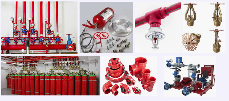 Υλικά δικτύων πυρόσβεσης, αξιόπιστα και πιστοποιημένα από διεθνείς οργανισμούς. Στυστήμα κατάσβεσης αερίων, συστήματα κατάσβεσης νερού, πυροσβεστικές φωλιές, δίκρουνα πυρόσβεσης, sprinkler, αφρού, σκόνης. Συστήματα κατάσβεσης αερίων, CO2, IG-541, INERGEN, FM-200......(HFC-227ea) Argonite, συστήματα κατάσβεσης επαγγελματικών μαγειρείων, κατηγορίας F-CLASS. Συστήματα πυρανίχνευσης και ανίχνευσης αερίων, συμβατικά και διευθυνσιοδοτούμενα.